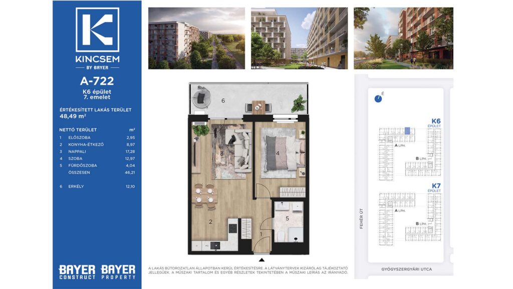 Budapest, Gyógyszergyári utca Kincsem LakóparkÁr: 66484260 FtTerület: 48.49 m²Szobák: 2Emelet: 6Azonosító: K6-A621Részletek