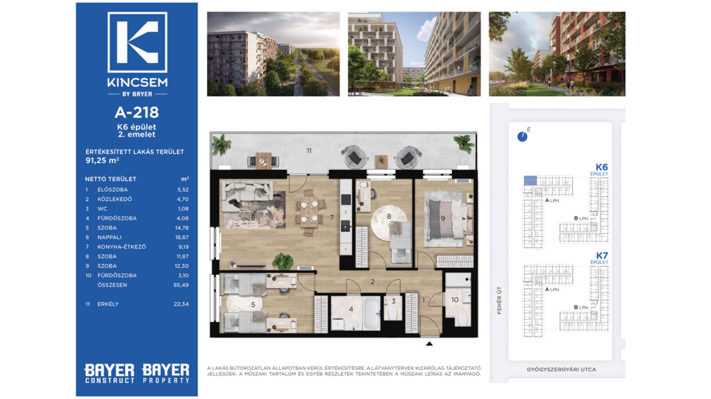 Budapest, Gyógyszergyári utca Kincsem LakóparkÁr: 98059570 FtTerület: 91.25 m²Szobák: 4Emelet: 2Azonosító: K6-A218Részletek