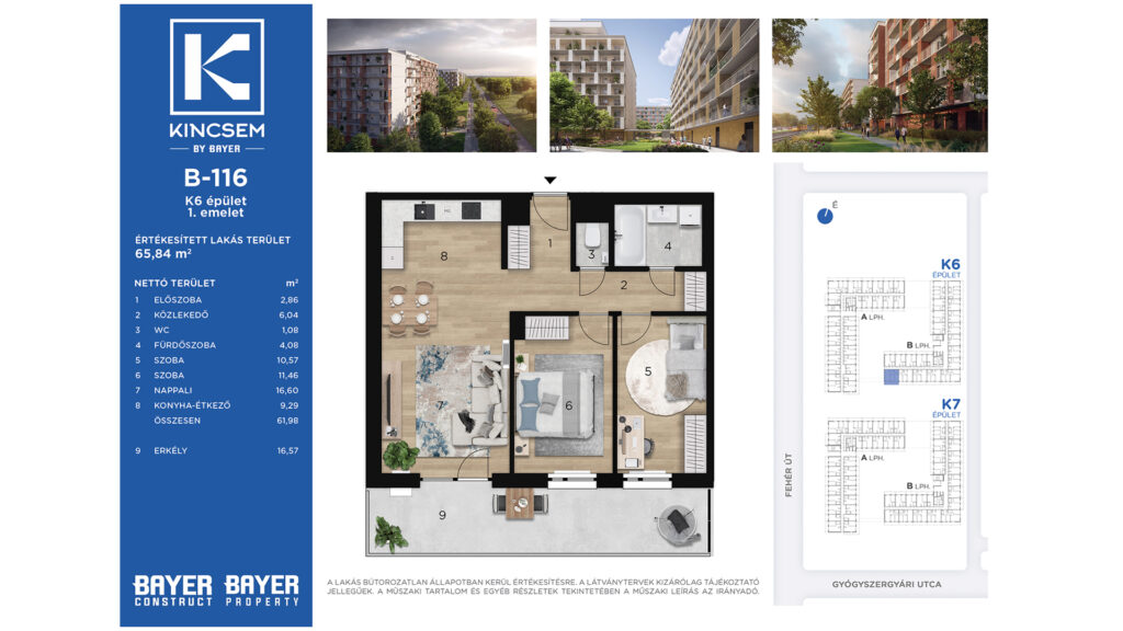 Budapest, Gyógyszergyári utca Kincsem LakóparkÁr: 62721000 FtTerület: 48.49 m²Szobák: 2Emelet: 1Azonosító: K6-B118Részletek