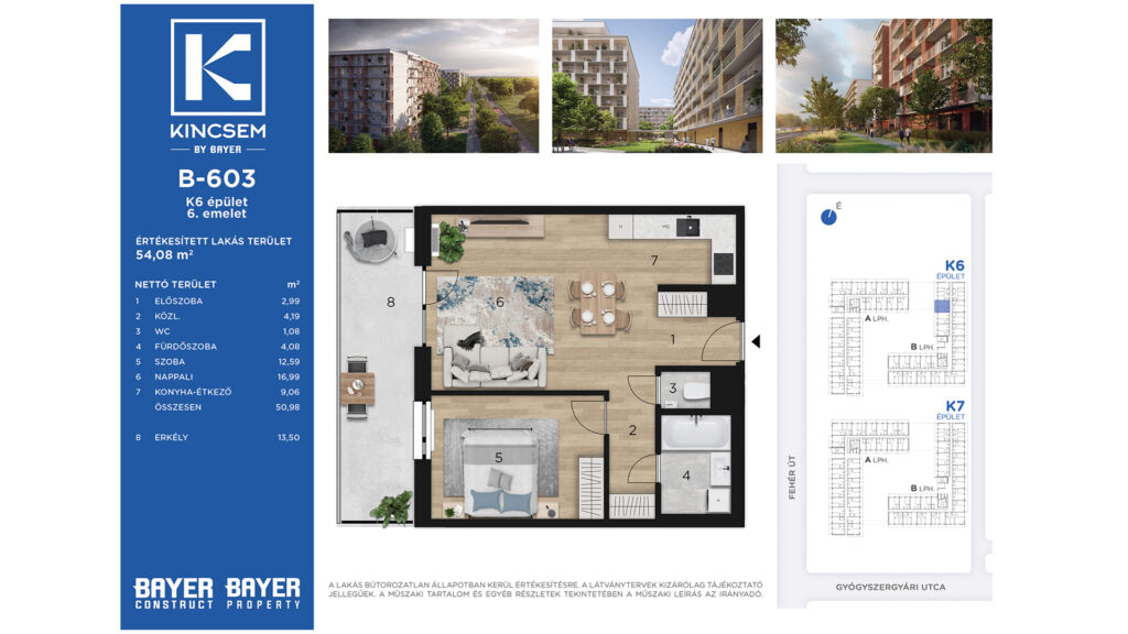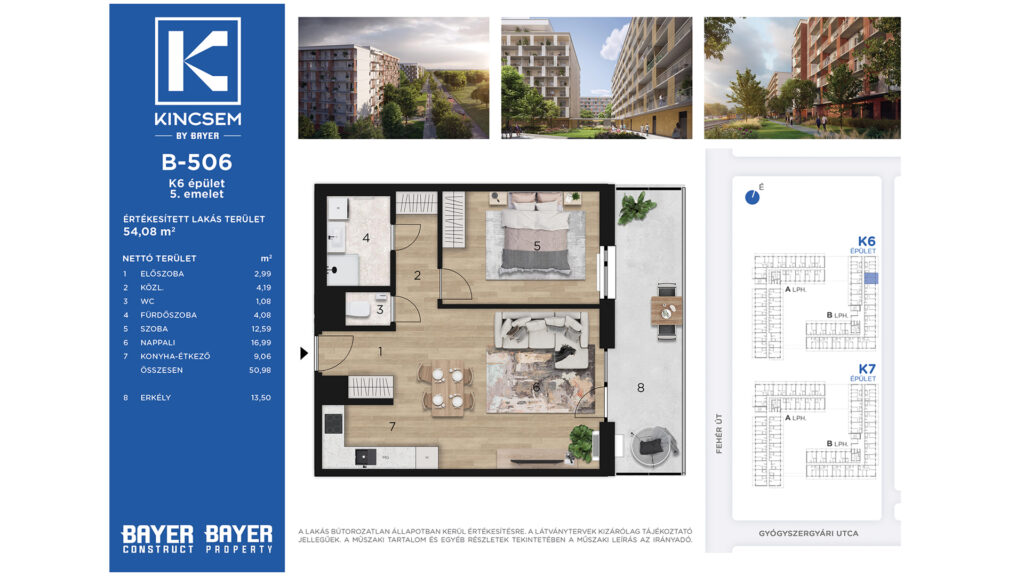 Budapest, Gyógyszergyári utca Kincsem LakóparkÁr: 69435080 FtTerület: 54.08 m²Szobák: 2Emelet: 5Azonosító: K6-B511Részletek
