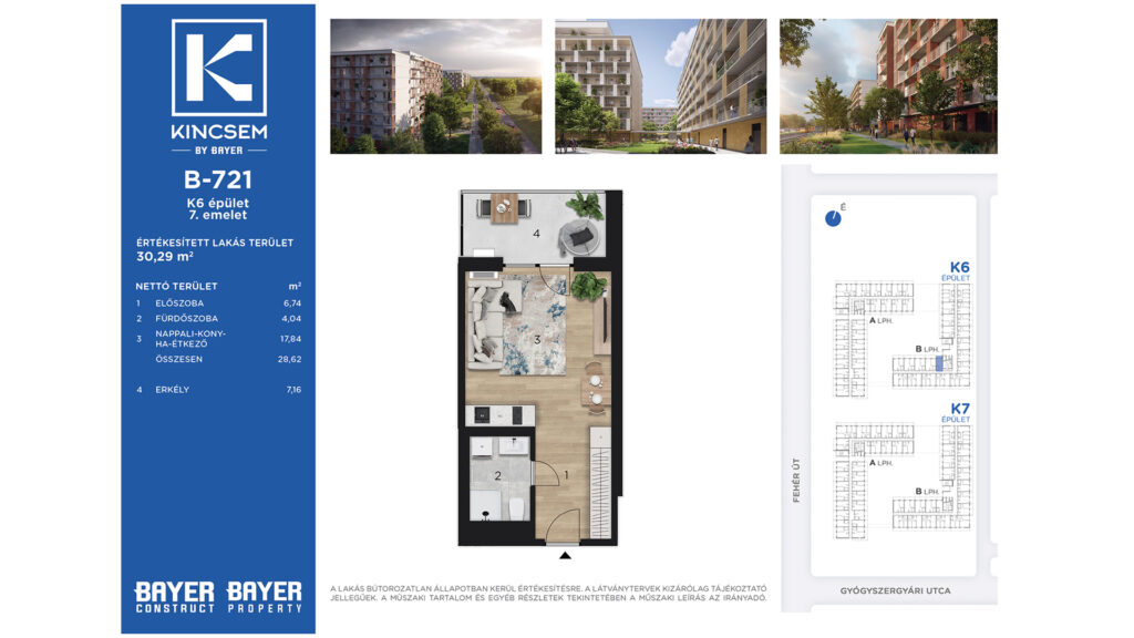 Budapest, Gyógyszergyári utca Kincsem LakóparkÁr: 46672860 FtTerület: 30.29 m²Szobák: 1Emelet: 7Azonosító: K6-B721Részletek