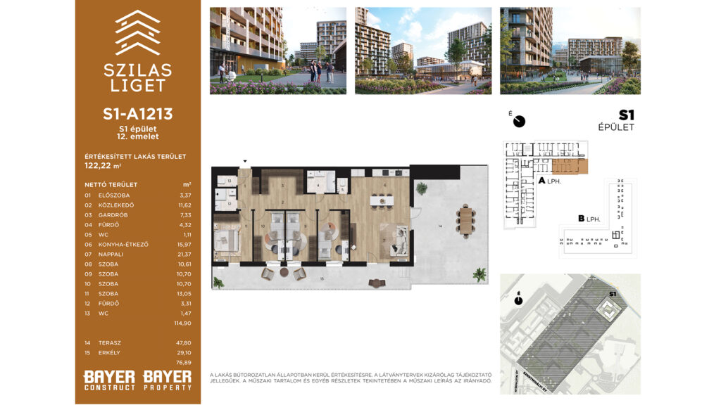 XV. kerület, Szilas park Szilas LigetÁr: 147351750 FtTerület: 122.22 m²Szobák: 5Emelet: 12Azonosító: S1-A1213Részletek