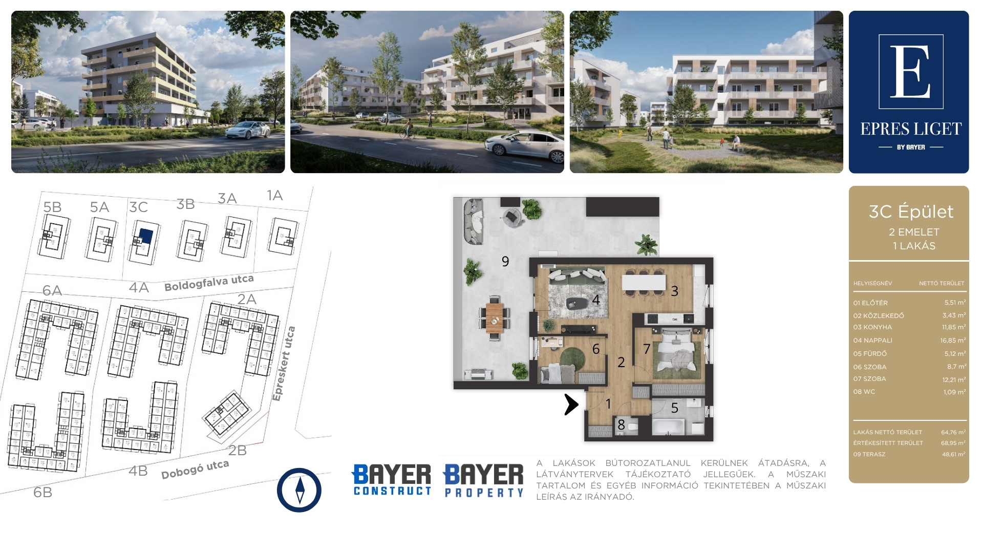nappali + 2 szobás lakások 60-76 m2 alapterülettel, és