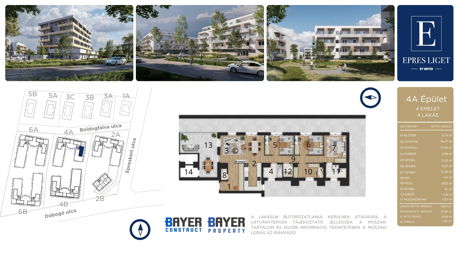 nappali + 3 hálószobás lakások 90–110 m2 alapterülettel,