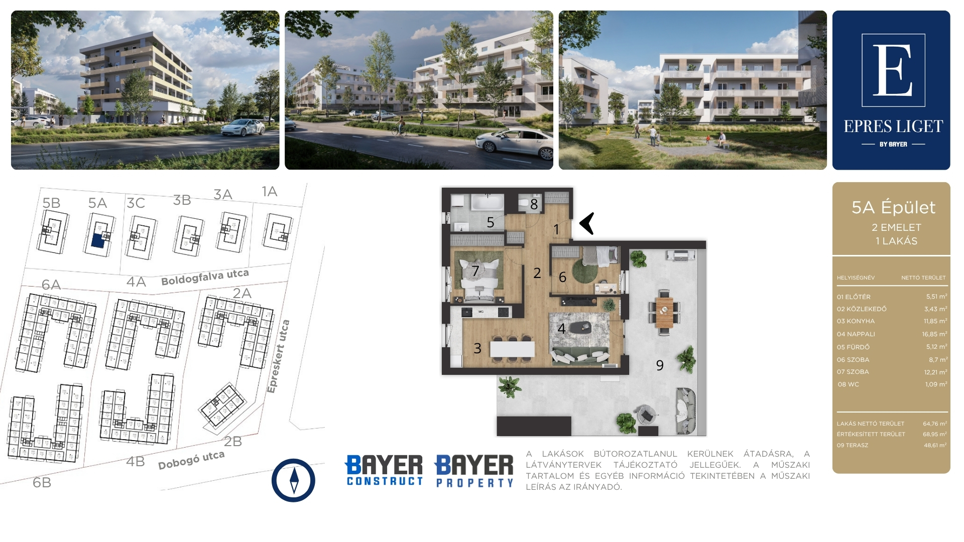 nappali + 2 szobás lakások 60-76 m2 alapterülettel, és