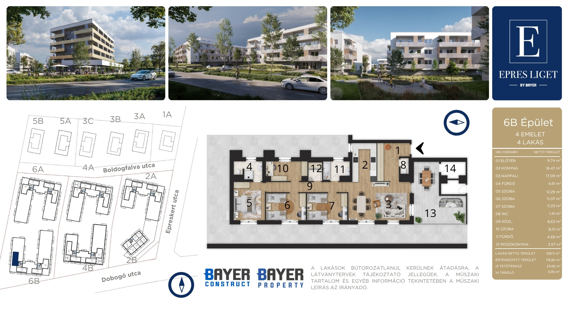 nappali + 3 hálószobás lakások 90–110 m2 alapterülettel,