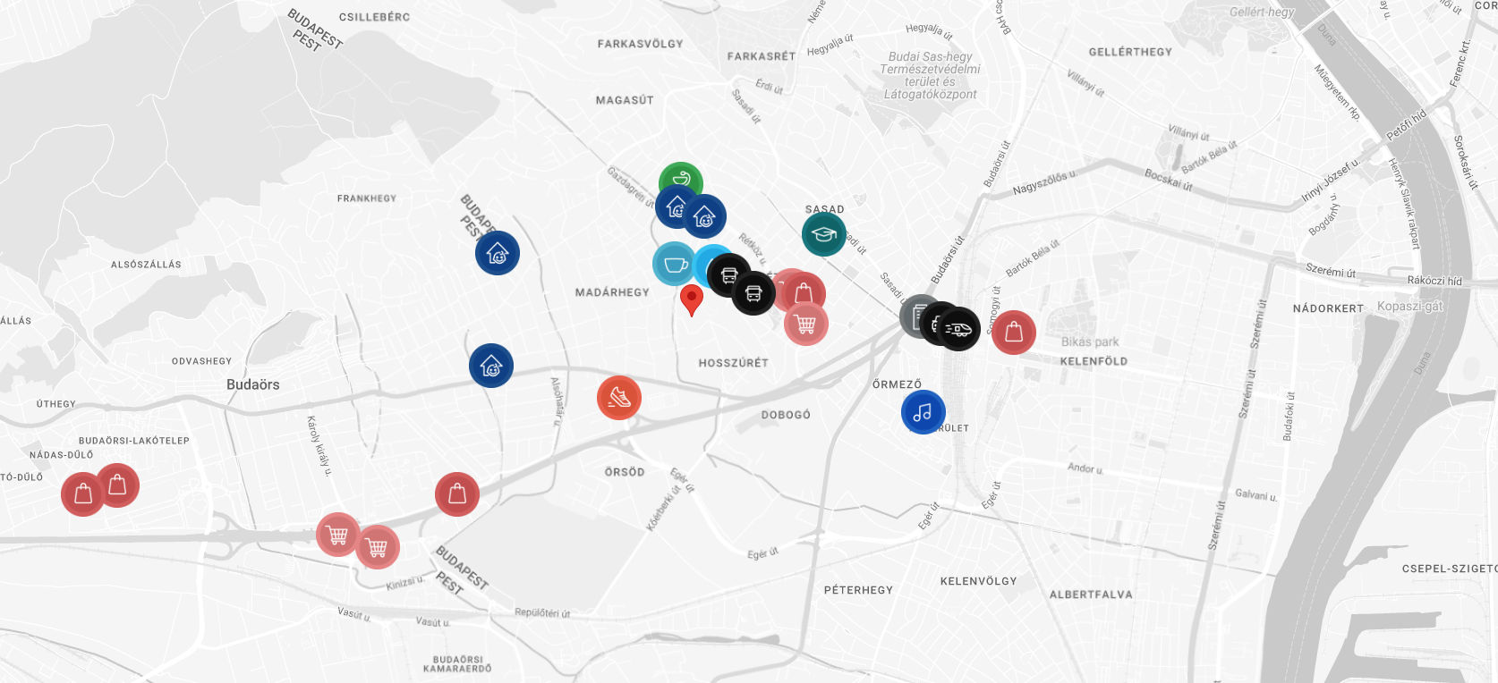 Gépjárművel 5 perc alatt elérhető az M1-M7 autópálya közös bevezető szakasza.