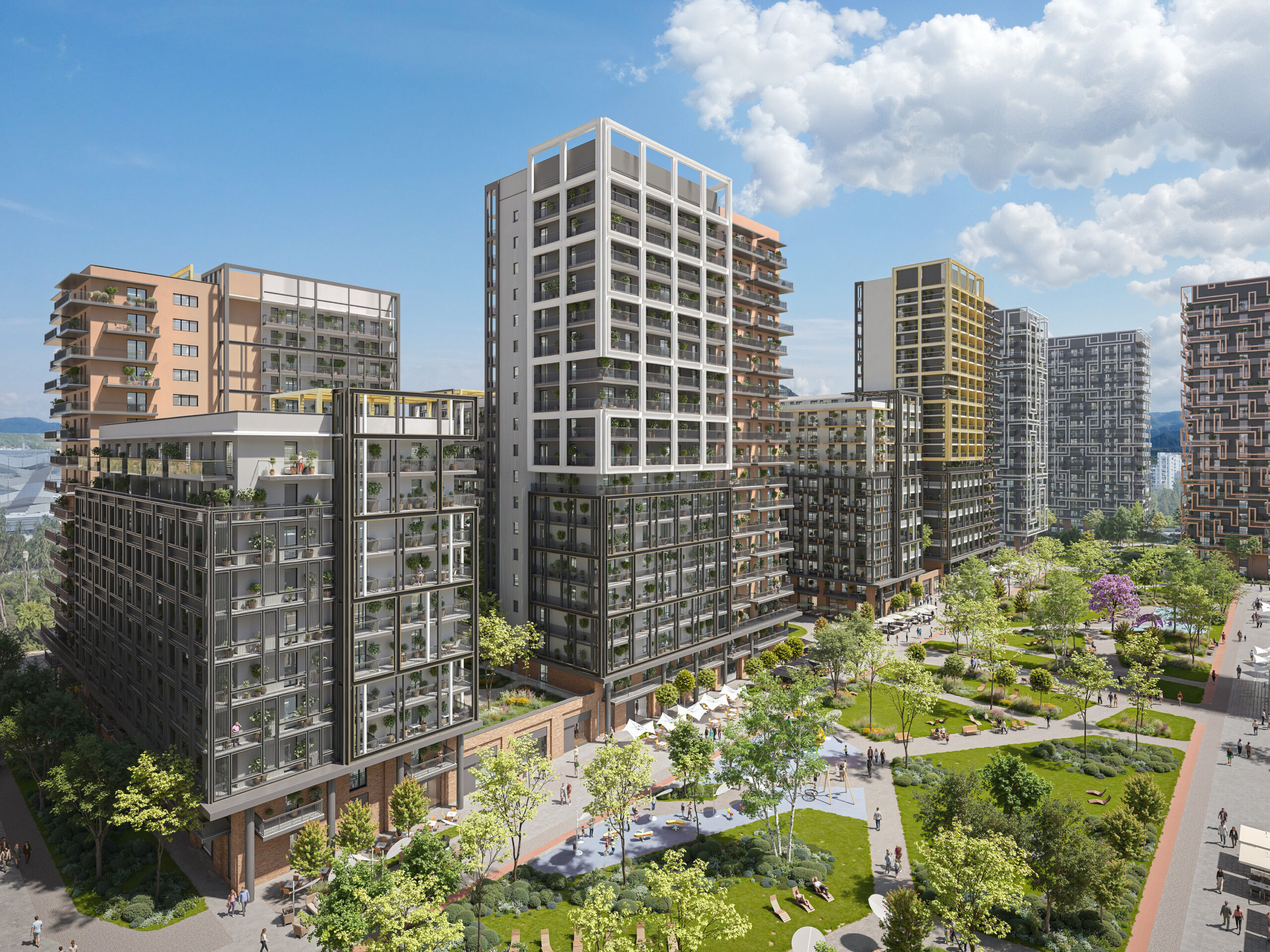 A lakások magas műszaki tartalommal, energiahatékony gépészettel és minden esetben privát terasszal vagy loggiával készülnek. A projekt központi eleme egy közel két hektáros park, amely futópályával, tanösvénnyel, kültéri fitneszpontokkal, új játszóterekkel, sétányokkal és közösségi terekkel biztosít természetközeli, aktív kikapcsolódást.